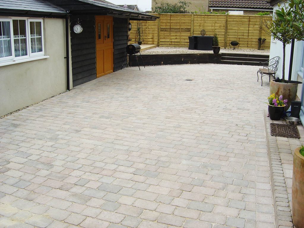 To complete the overall landscape design, we laid a block-paved patio and wrap around driveway and replaced the old rotten fence with a new timber featheredge fence.